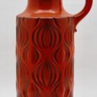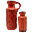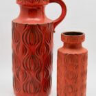 Scheurich vases in orange glaze featuring the indented pattern ‘Amsterdam’, (so named because the design was inspired by the map of Amsterdam’s central canal system).