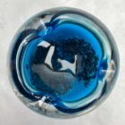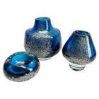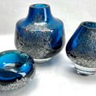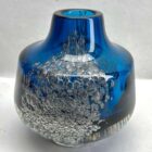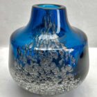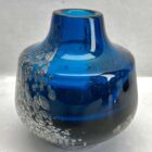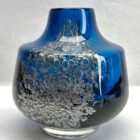 Designed by Heinrich Löffelhardt and manufactured by Schott Zwiesel. Heinrich’s design activity was at its Zenith during the 1950s-1960s. He became especially interested in the use of potash and other chemical additives which create bubbles in the glass to give an intriguing naturalistic effect. His extensive designs are still being rediscovered today as much was undocumented at the time.Size vase: 13 cm x 10 cmSize Bowl: 11 cm x 6 cmCylindrical with a flat polished rim, clear glass base. Cased light sage-blue glass with a wave of silvered bubbles Please don’t hesitate to get in touch with any further questions.With best wishes, GeertEarly Bird Gallery