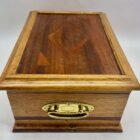 Solid Oak Arts & Crafts Box with Decorative Brass and Mirror circa 1910s