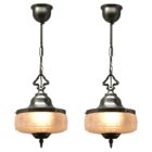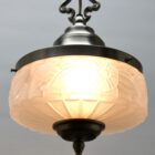 Fitting messing pendant ceiling light with screw fixing to hold a stylish Belgian Art Deco lampshade. Good distribution of darker and lighter shades,