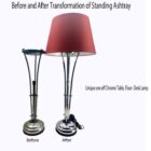 This was before the Transformation of me a standing ashtray from the Firma Demeyere Belgium 1960s see last photo.Now a Unique lamp one of a KindLarge chrome table or desk lamp – FloorThe lamp has got a New E27 Edison screw on socket.The sizes are measured without lamp shade.Recently cleaned and polished so that it in excellent condition and in full working order having also been re-wired and provided with new fittings E27And safe for immediate usage in the world.The lamp is sold without the lampshade.Please don’t hesitate to get in touch with any further questions. With Best Wishes Geert Niessen
