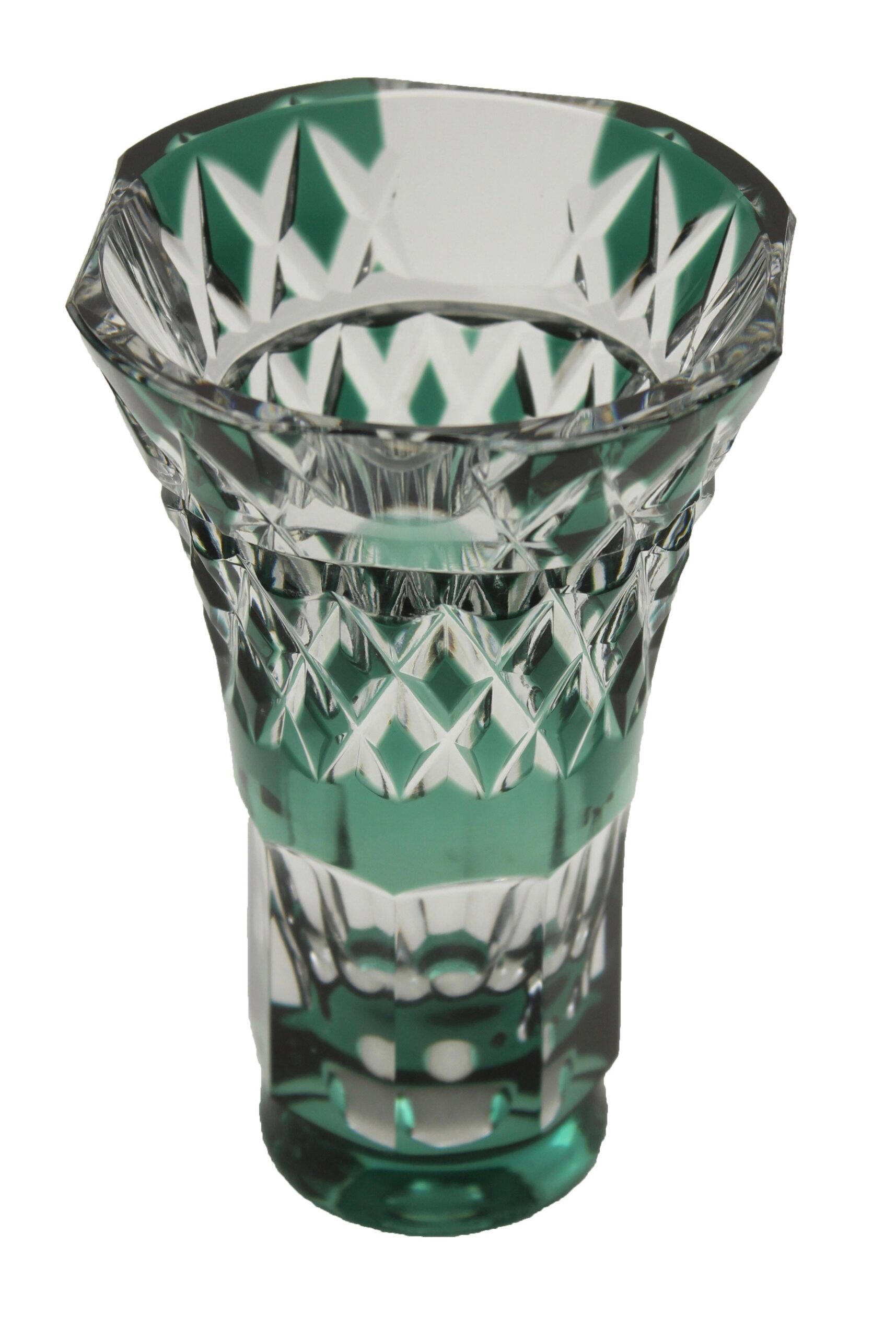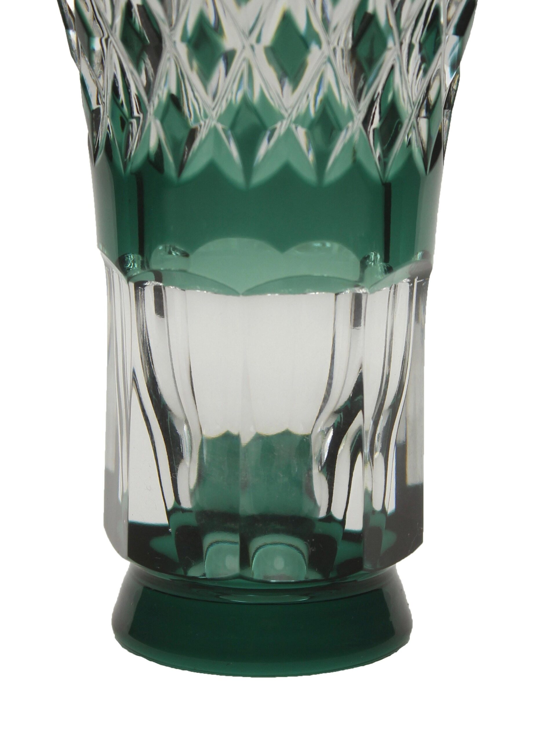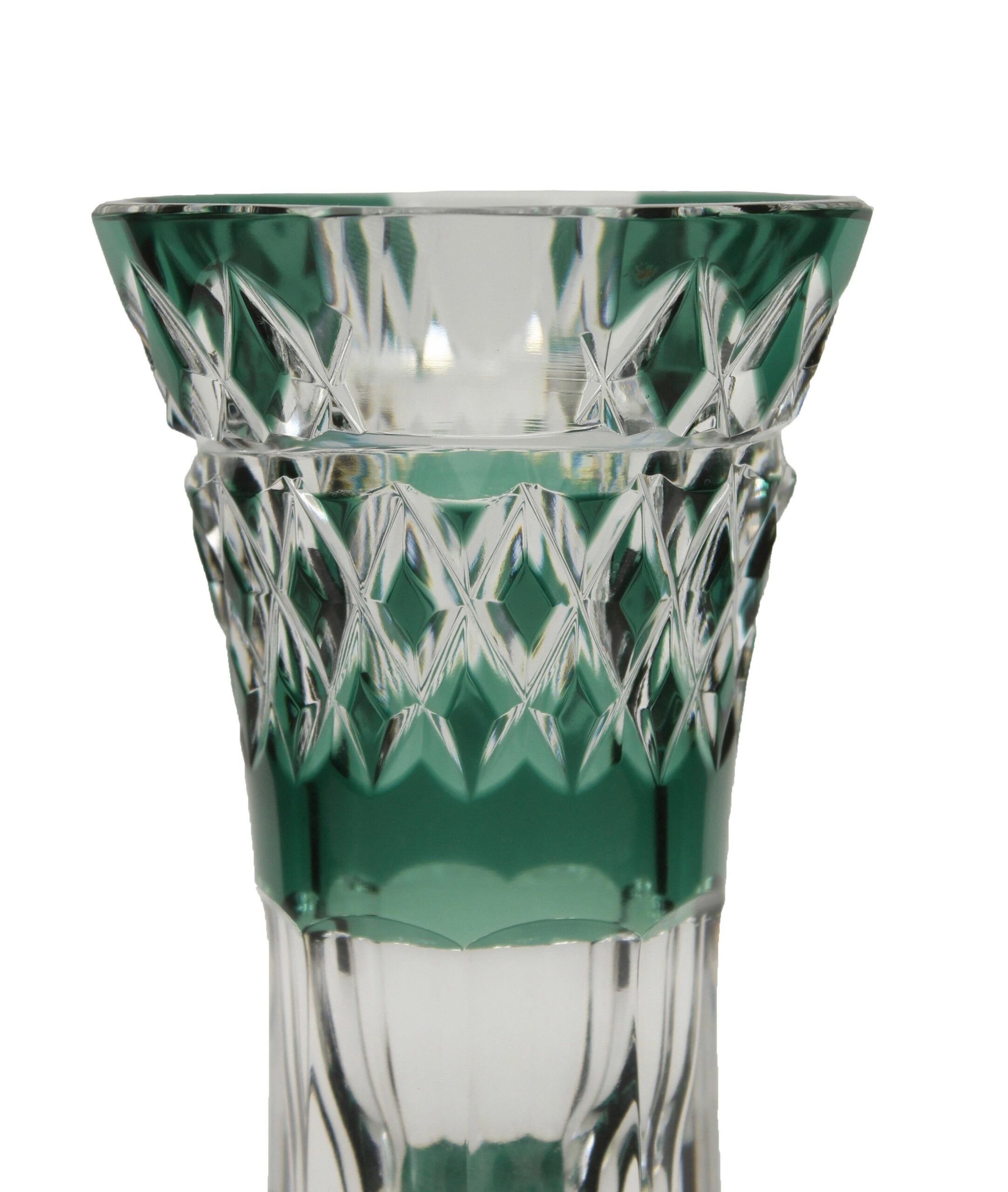 Beautiful signed Val Saint Lambert circular crystal vases, handcut to clear, the glass is thick, deeply and evenly cut,