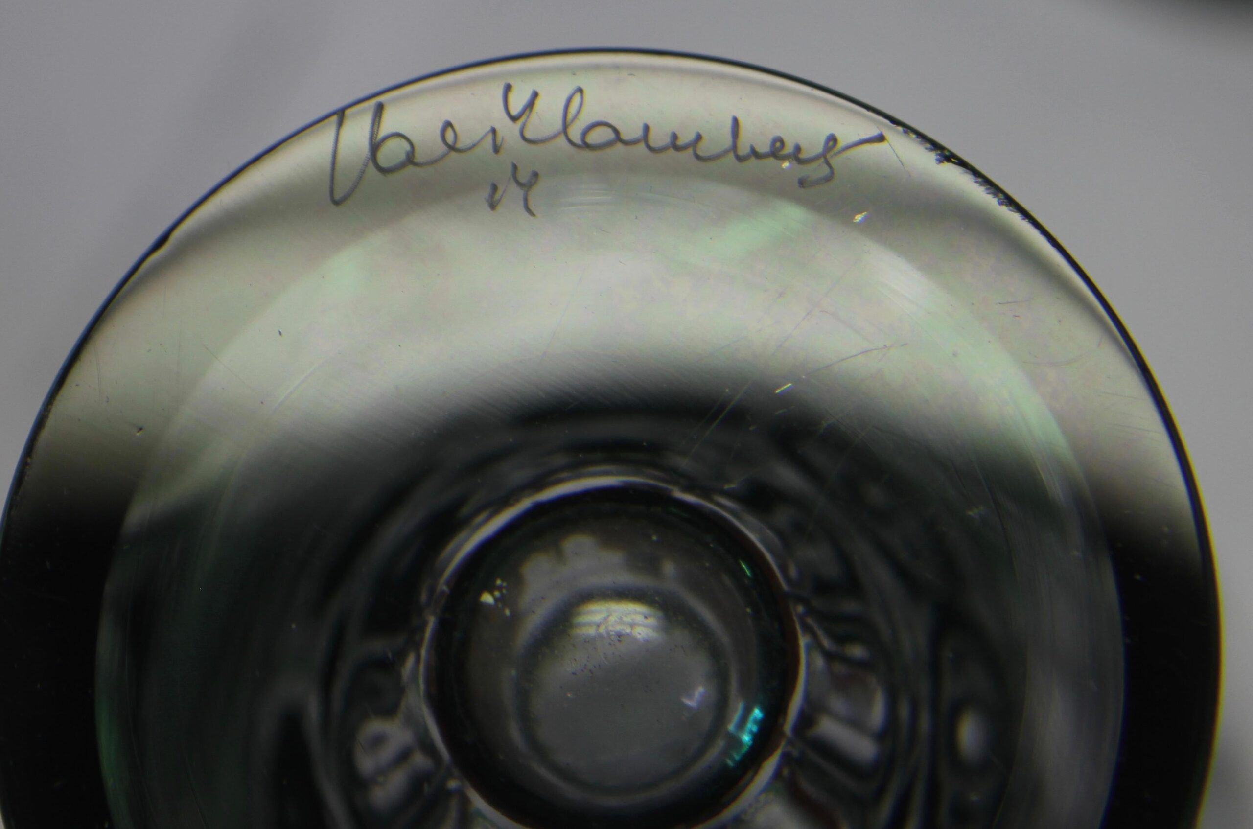 Val Saint Lambert circular crystal vases, handcut to clear, signed