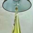 This simple yet graceful table lamp is in size; 39 cm excluding the shade.The colored core in Classic Val Saint Lambert tint, has been given a thick Sommerso (clear crystal casing) so that the object appears delicate whilst remaining solid and stable as a lamp base. The twist on the external surface gives an entrancing optical effect as you pass it.Weight crystal 2.2 kg Val saint lambertThe lamp is sold without the lampshade.In excellent condition and in full working order having recently been re-wired and provided With a new fitting E27 And safe for immediate usage in the WorldProduced between 1955 and 1965, it was handmade from top-quality lead crystal by Val Saint Lambert (the main Belgian crystal glassware manufacturer, founded in 1826 and based near Liege).Please don’t hesitate to get in touch with any further questions. With Best Wishes Geert Niessen