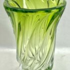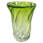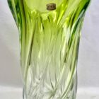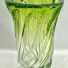 Val Saint Lambert, LABEL Sculpted Crystal Vase with Green Core, Belgium