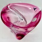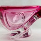 Heavy Val Saint Lambert crystal vase, whit Label The central amethyst color (a traditional favorite for VSL) has been given a thick Sommerso (clear layer on the outside) and sculpted with subtle curves by the master craftsmen at Belgium’s top factory.A result is a heavy object with a very elegant appearance, that catches the light as you move past it.Label Val St. Lambert, circa 1950s.Origin: Belgium Crystal weight: 7.6 kg Measures: Diameter 30 cmHeight 16.5 cmThe piece is in good condition with clean surfaces and a real beauty!