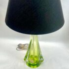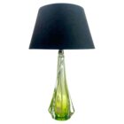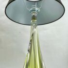 This simple yet graceful table lamp is in size; 39 cm excluding the shade.The colored core in Classic Val Saint Lambert tint, has been given a thick Sommerso (clear crystal casing) so that the object appears delicate whilst remaining solid and stable as a lamp base. The twist on the external surface gives an entrancing optical effect as you pass it.Weight crystal 2 kg Label Val saint lambertThe lamp is sold without the lampshade.In excellent condition and in full working order having recently been re-wired and provided With a new fitting E27And safe for immediate usage in the WorldProduced between 1955 and 1965, it was handmade from top-quality lead crystal by Val Saint Lambert (the main Belgian crystal glassware manufacturer, founded in 1826 and based near Liege).