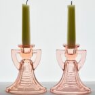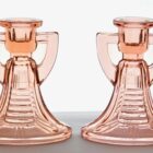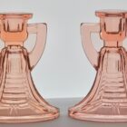 Pair of very nice Rosaline Art Deco candlesticks made by Val Saint-Lambert. (More in stock).