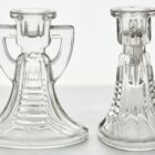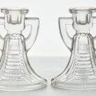 Pair of very nice Rosaline Art Deco candlesticks made by Val Saint-Lambert. (More in stock).