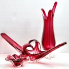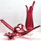 The central Cranberry colour (a traditional favourite for VSL) has been given a thick Sommerso (clear layer on the outside) and sculpted with subtle curves by the master craftsmen at Belgium’s top factory.
