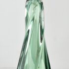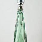This simple yet graceful green table lamp is in medium size; 12.99 inches excluding the lamp-fitting and shade. The colored core in Classic Val Saint-Lambert tint has been given a thick Sommerso (clear crystal casing) so that the object appears delicate whilst remaining solid and stabile as a lamp base. The twist on the external surface gives an entrancing optical effect as you pass it.