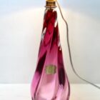 The core in Classic Val Saint Lambert (Signed) has been given a thick Sommerso (clear crystal casing) so that the object appears delicate whilst remaining solid and stabile as a lamp base. The twist on the external surface gives an entrancing