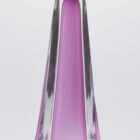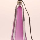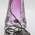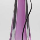 This simple yet dramatic amethyst-colored table lamp is in the largest size (over 18 inches excluding the lamp-fitting and shade).The colored core in Classic Val Saint Lambert tint has been given a thick Sommerso (clear crystal casing) so that the object appears delicate whilst being actually heavy and stabile as a lamp base.Produced between 1955 and 1965, it was handmade from top-quality lead crystal by Val Saint Lambert (the main Belgian crystal glassware manufacturer, founded in 1826 and based near Liege.)The item is in a completely undamaged state, signed Val Saint Lambert on the base, and bears the original VSL label.It’s in full working order having recently been re-wired and provided with new lamp-fitting, E27.The lamp is for sale without any lampshade. The fitting will suit all the standard-sized lamp shades.Weight (crystal lamp with fittings excl. shade) 5.1 kg 11.24 pound.The height is measured without shade and fittings.And safe for immediate usage in the world.