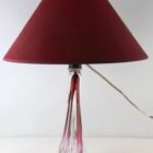 This simple yet dramatic table lamp is in medium size; 12.02 inches excluding the lamp-fitting and shade. The colored core in Classic Val Saint Lambert tint, has been given a thick Sommerso (clear crystal casing) so that the object appears delicate whilst remaining solid and stabile as a lamp base.