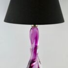 The colored core in Classic Val Saint-Lambert tint has been given a thick Sommerso (clear crystal casing) so that the object appears delicate whilst remaining solid and stable as a lamp base. The twist on the external surface gives an entrancing optical effect as you pass it.