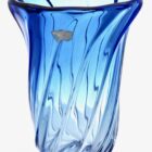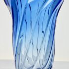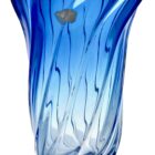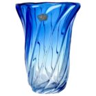 Beautiful Val Saint Lambert circular crystal vase, the glass is thick clear and cobalt Bleu