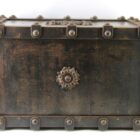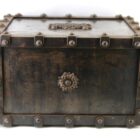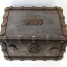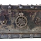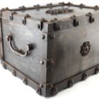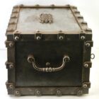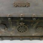 Antique safe made from cast iron in France, Manufactured as a safety lock box for storing either important documents or jewellery this was easily transported for the upwardly mobile lady or gentleman during the Victorian period. These were also used as diplomats lockboxes when travelling on the continent. This was a fireproof safety box with padded insides which was instrumental in protecting its precious contents both inside and out.