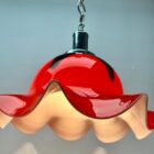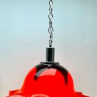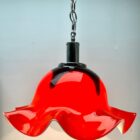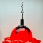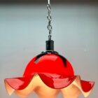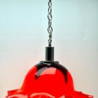 Vintage pendant light Murano. This central pendant light is crafted from heavy hand-blown glass with dramatic swirling clouds of red and black creating a warm feel.