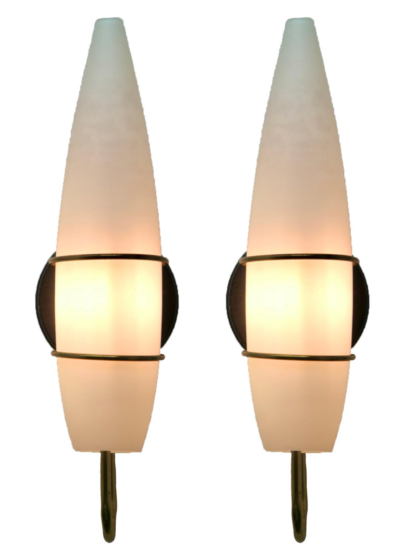 Vintage Pair of 2 Arms Wall Mount Lamps in the Style of Stilnovo, Italian, 1960s