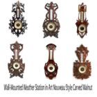 Wall-mounted weather station in carved walnut made in Liege Belgium by G.Tart. High quality mechanism with jeweled movement barometer and thermometer (in centigrade)Unusual design with high relief C-scrolls and flowers in Rococo style (from theArt Nouveau’ period) with a lovely walnut case/. Equipment in full working order.Please don’t hesitate to get in touch with any further questions. With best wishes, GeertEarly Bird Gallery