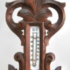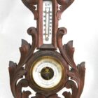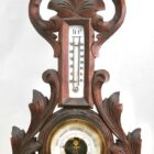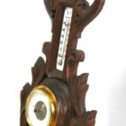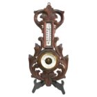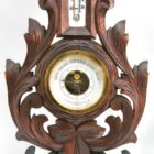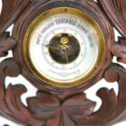 Wall-mounted weather station in carved walnut made in Belgium by A. de Lambert. High quality mechanism with jeweled movement barometer and thermometer (in centigrade)