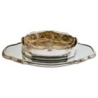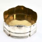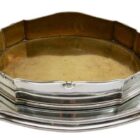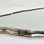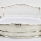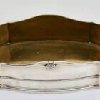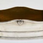 Made of solid silver, both silver pieces are fully marked, 800 silver with the maker’s mark. This substantial and beautifully-crafted neoclassical centrepiecewas made in the 1920s and will look perfect on a hall/lobby table or in the dining room.The large silver tray is mounted on a wooden base and secured with brackets. The outside rail has a tube border with scallop shells. The polished surface of the silver tray is in very fine condition for its age and gives a good mirror to the light. The design motif is continued on the silver collar which slips over a copper liner. The copper liner-basket is cut to an exact outline and fit so that a floral arrangement can be executed elsewhere and then dropped into position.For convenience, this item comes with a cut crystal vase saint Louis of suitable height and shape which sits inside the copper lining. The crystal vase may be ‘associated’, it cannot be verified that it was originally supplied with the rest of the set, but it is of the right period and style.The Brussels firm of Wolfers Freres -Silversmiths, was in the hands of Philippe Wolfers from 1892 until 1929. With his cousin Albert, they became well- known for their neoclassical, Art Nouveau and Art Deco pieces, sold internationally through a network of exclusive retailers.Both silver pieces are fully marked, 800 silver with the maker’s mark.The silver weight of the tray is; 2.53 poundThe silver weight of the silver collar is; 4.15 poundThe joint weight to silver is; 6.68 poundThe weight of the copper (waterproof) insert is; 3.13 poundThe weight of the crystal 10.8 poundSize tray 29.92 x 14.96 x 1.2 inchesSize collar 17.71 x 11.41 x 4.13 inches.